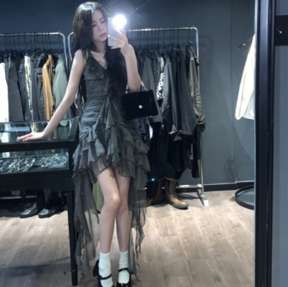 Gothic Punk Mosaic Strap Suspender Dress Women